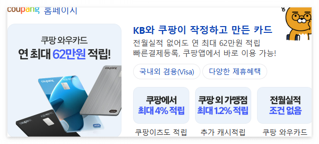 쿠팡과 쿠팡이츠에서 와우카드로 결제하면 4%가 적립되는 혜택이 무척 매력적이죠?