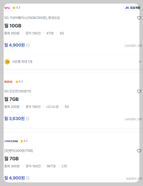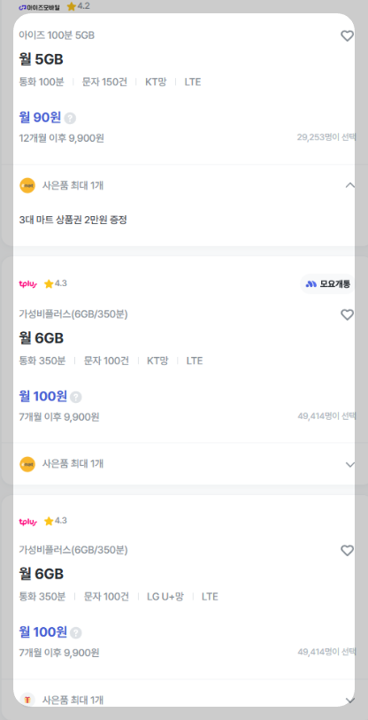 모요의 주간 TOP 20 요금제를 확인해 보세요! | 모요, 모두의요금제