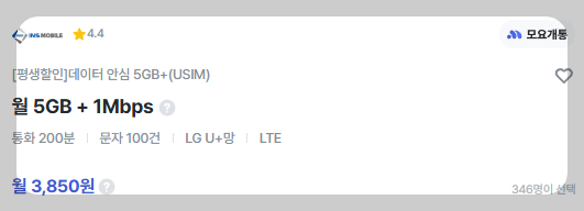 월 3,630원~ 4,900원이면 7G 또는 10G 의 데이터를 사용할 수 있습니다.