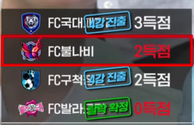 이미 국대와 구척이 4강진출을 확정지어 놓았고 , 발라드림은 탈락이 확정된 상태인데 불나비는 조마조마한 마음으로 기다리고 있죠.
