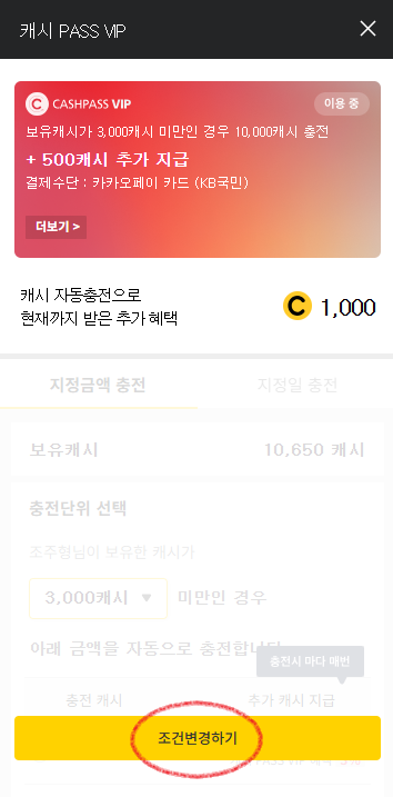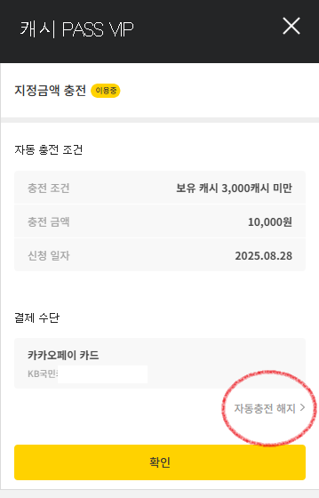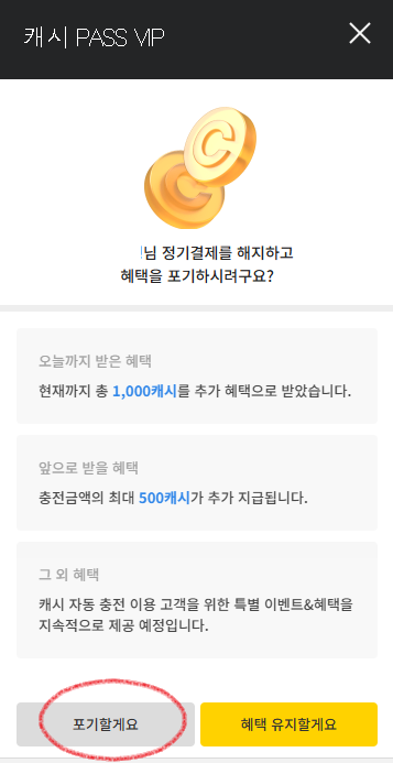 아무튼 자동충전을 하면 캐시를 조금 더 주길래 했었다가 해지하려고 했는데 이게 쉽지 않더군요.
