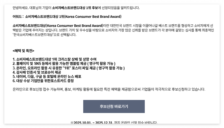가끔 보면 잘 모르는 업체인데 무슨 상을 받았다고 홍보하는 경우들을 볼 수 있습니다.