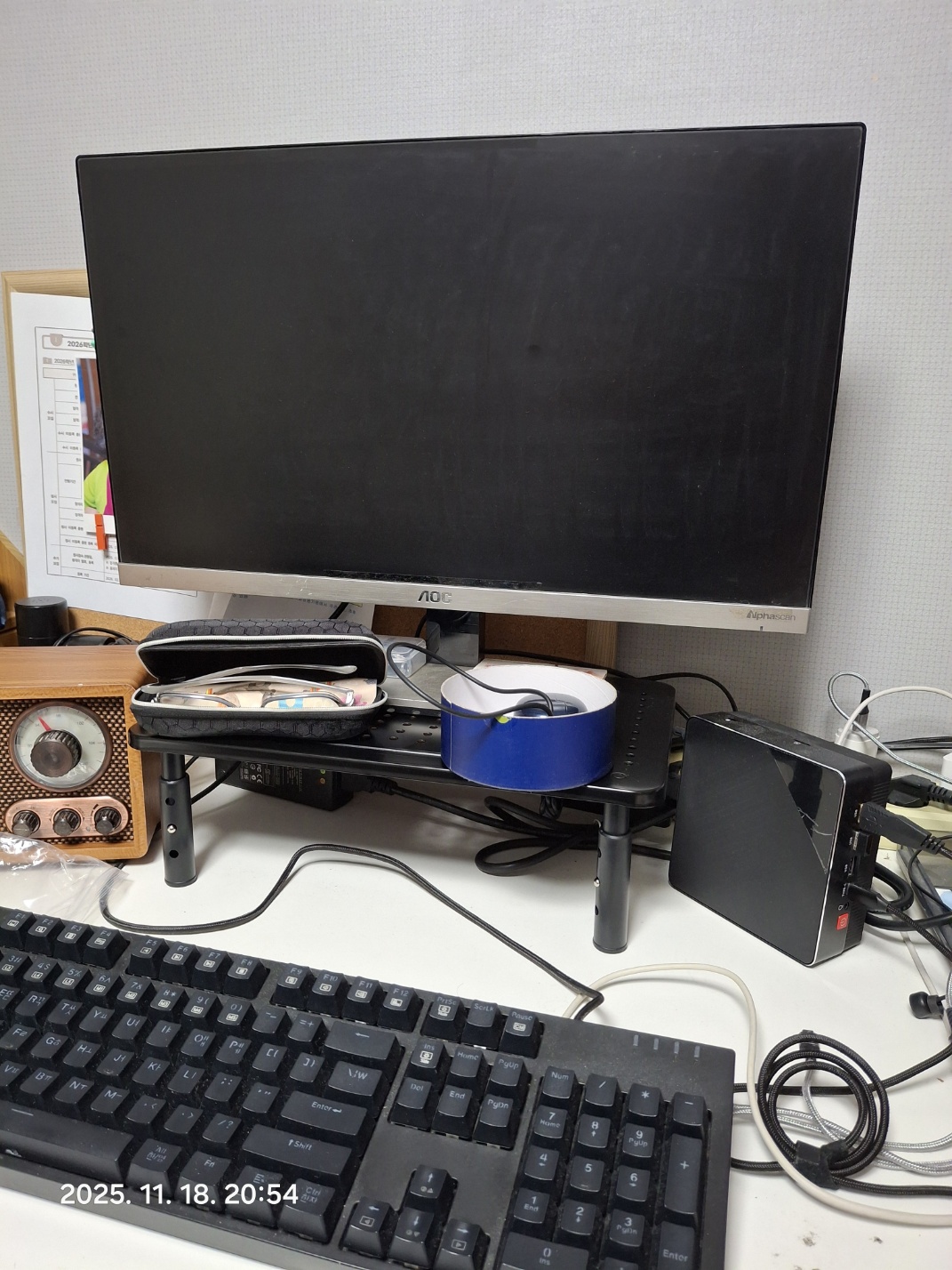 저는 회사에서는 넓은 모니터 받침대를 사용하는데 모니터 받침대 위에 메모지, 볼펜 등등 작은 소품들을 올려놓기 좋습니다.
