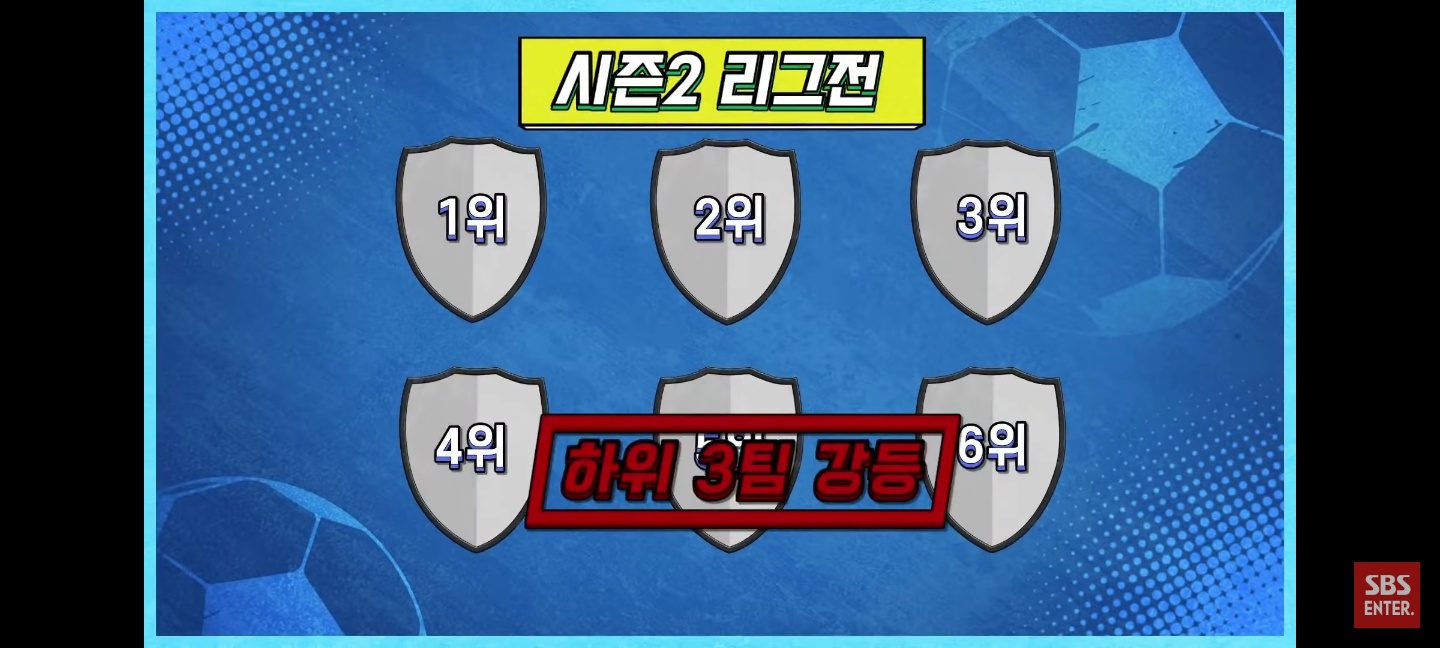 시즌1의 성적은 1위 불나방 , 2위 국대패밀리, 3위 월드클라쓰 였습니다.