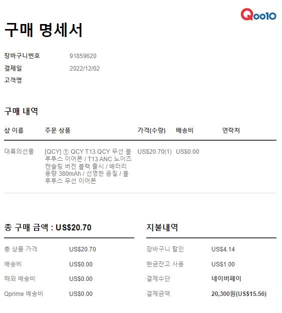 바로 그 QCY 의 신제품 QCY T13 ANC 이어폰을 구매했습니다.