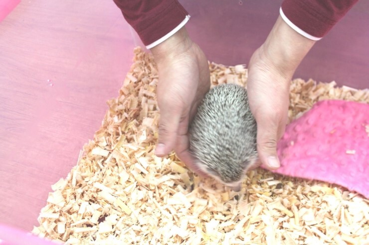 장갑을 끼고 핸들링해도 고슴도치는 후각이 뛰어나서 보호자의 냄새에 차츰 적응해가게 됩니다.