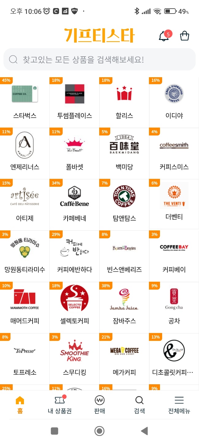 좀 알려진 유명한 프랜차이즈들은 대부분 기프티콘을 판매합니다.