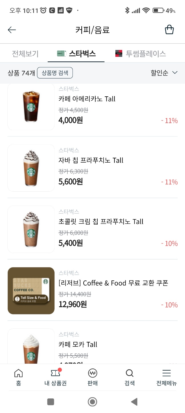 가장 대표적인 , 기프티콘이 가장 흔한 것은 역시 "스타벅스" 입니다.