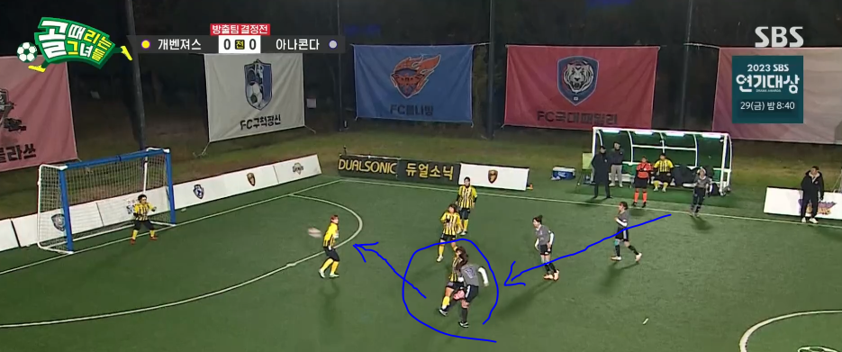 하지만 아나콘다는 킥인상황에서 이영표 감독다운 준비된 세트플레이로 선취점을 얻습니다.