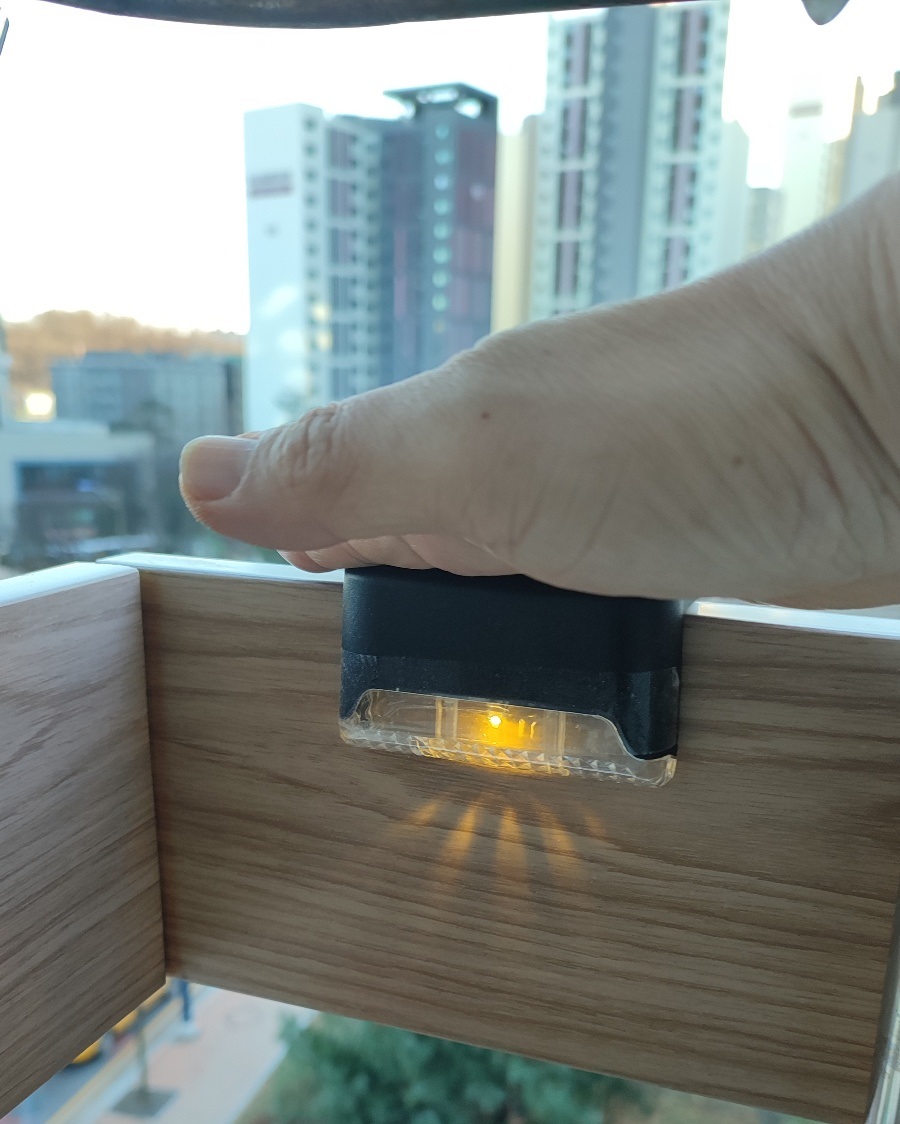 별도의 전원공급이 필요없이 태양광으로 충전하여 밤에 조명을 비춰주는 계단램프라네요.