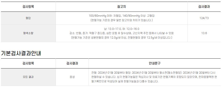 아래는 가장 최근에 한 헌혈의 혈액검사결과 입니다.