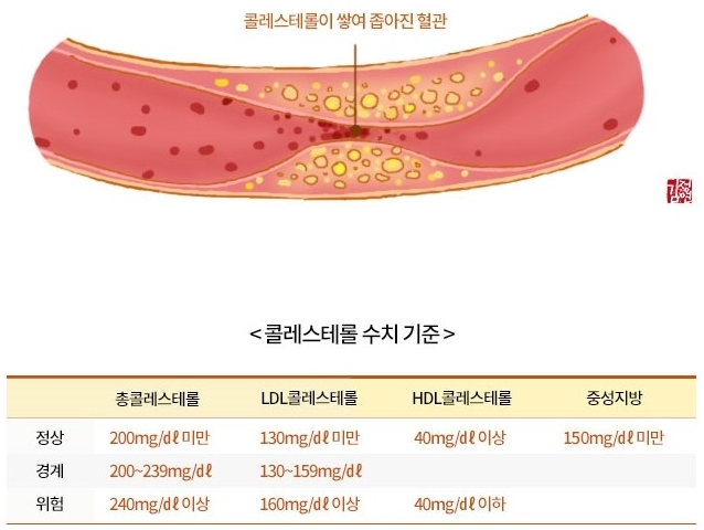 다른 것들은 좋은데 , 총콜레스테롤 수치가 빨간색으로 똭 ㅠㅠ