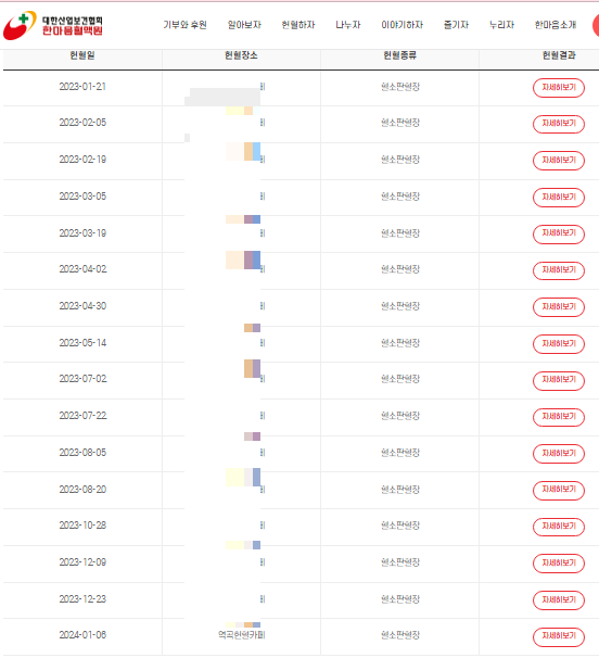 아래는 지난 저의 1년간 헌혈기록입니다.