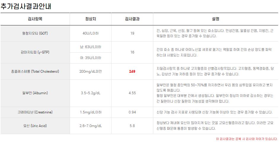 사실 작년 1월 7일 추가검사결과에도 총콜레스테롤 수치가 247 이 나왔었고,