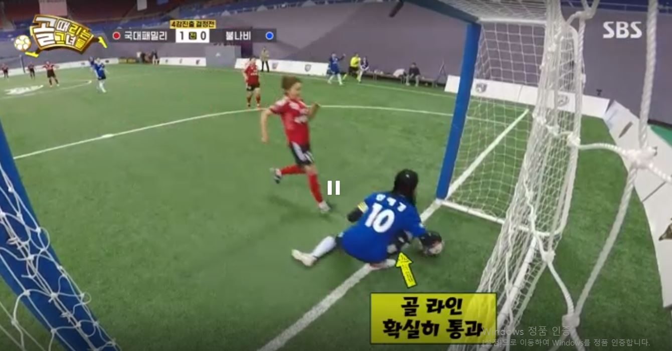 강보람의 킥인 후 세컨볼을 채연이 가볍게 차 넣어서 동점이 됩니다.