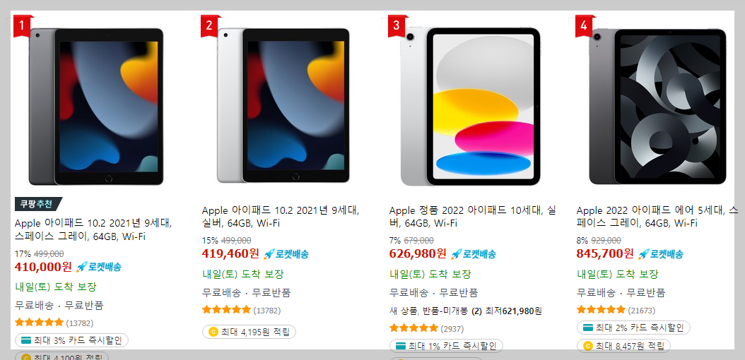 1. 아이패드 9세대 vs 10세대 vs 에어