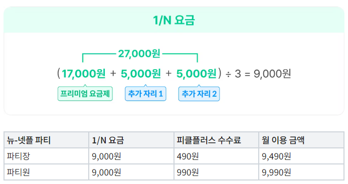 - 파티장으로 이용 : 월 9,490원 (매월 27,000원 결제후 피클플러스에서 차액을 입금받는 방식). 4명 동시 시청.