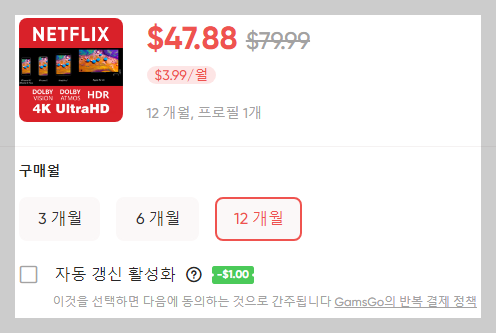 - 프리미엄 요금제 : 4K(UHD) + HDR 화질 , 4명 동시시청 가능
