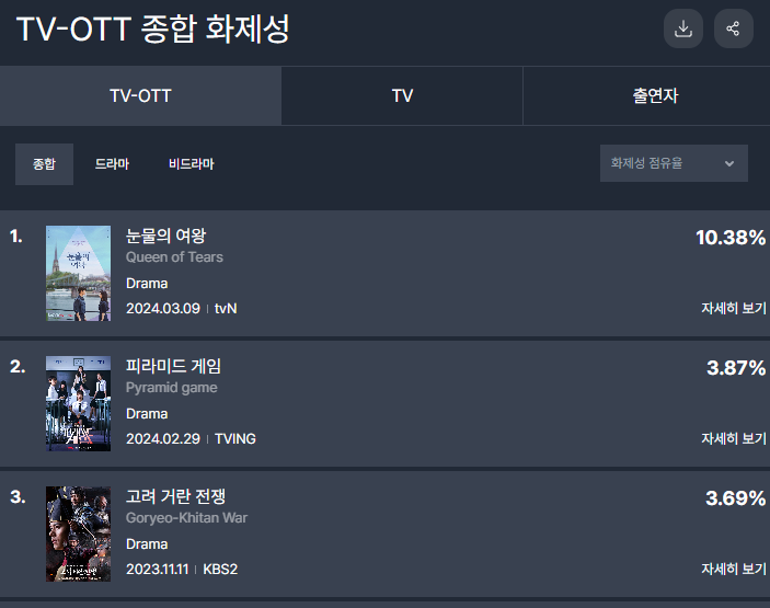눈물의 여왕이 이제 2회가 방송되었고 본격적인 스토리의 진행 전의 도입부만 보여주었다는 점을 고려하면 굉장한 상황입니다.