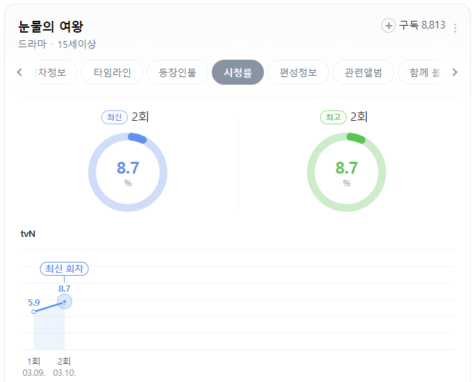 단 2회를 방송했을 뿐이지만 시청률 8.7%를 찍고 있습니다.