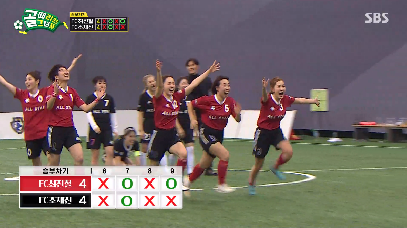 양팀은 승부차기 아홉번씩이나 했고, 마지막에 환호한 팀은 FC최진철입니다.