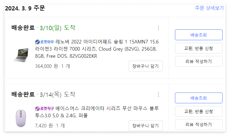 열흘쯤 전에 집사람이 "나도 노트북 사줘" 하는 바람에 노트북과 마우스를 주문했습니다.