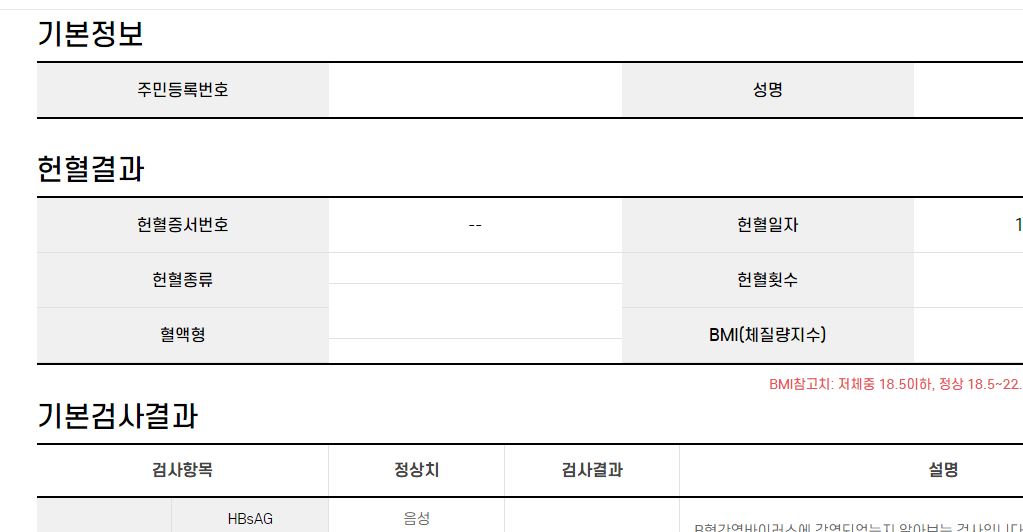 제대로 된 검사결과는 헌혈 후 2일 후에 한마음 혈액원 홈페이지에서 확인 가능합니다.