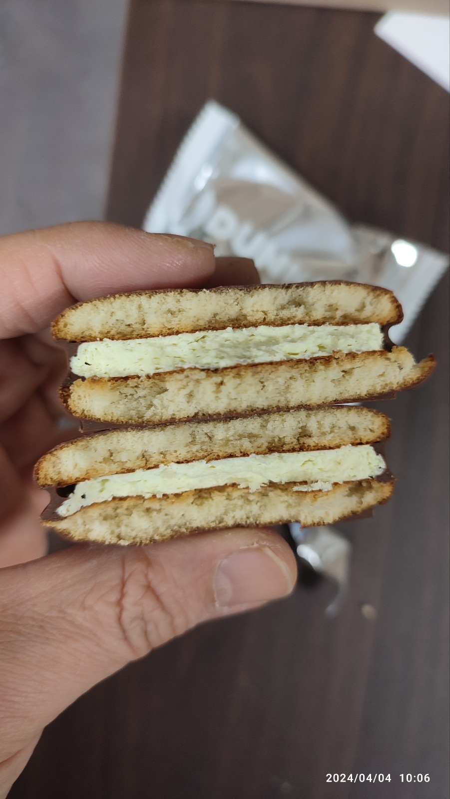 오리온 초코파이가 빵 같은 느낌이고, 롯데초코파이나 몽쉘이 조금 더 단단한 파이의 느낌인데 보스톤 크림파이의 식감은 몽쉘에 가까운것 같습니다.