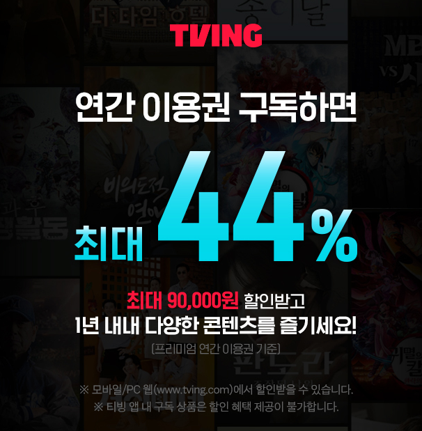 현재 기준으로 티빙은 연간이용권을 할인하고 있습니다.