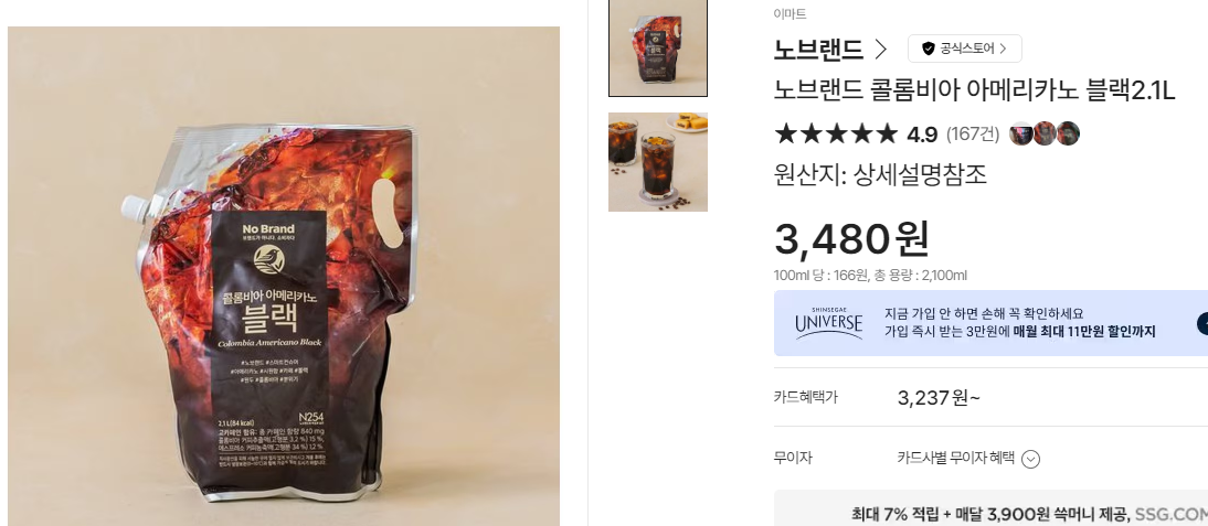 쓱닷컴에 가셔서 "노브랜드 아메리카노" 를 검색하시면 쉽게 찾으실 수 있습니다.