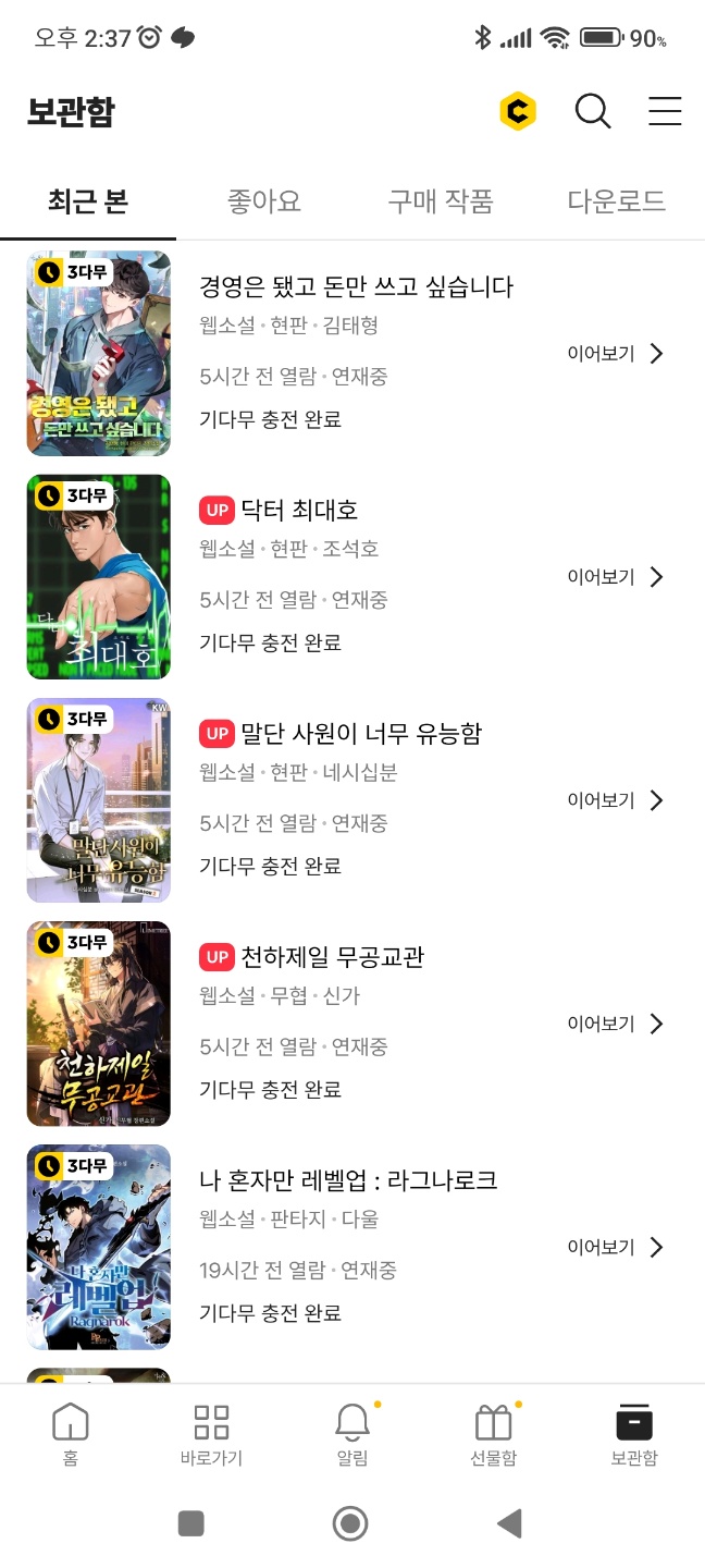 카카오페이지는 제가 요즘 가장 많이 사용하는 어플중 하나입니다.