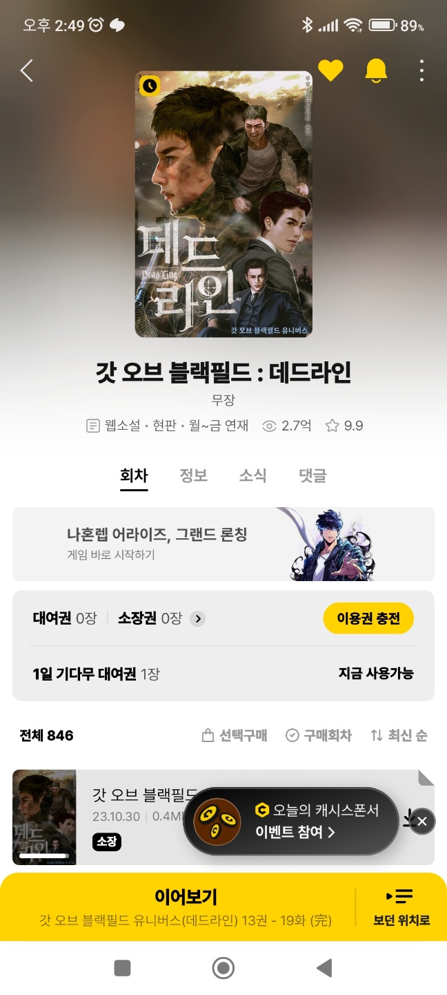 저의 인생책 중 하나인 "갓 오블 블랙필드" 의 새로운 시리즈가 나왔다는 것을 알게 되어서 찾아보다가 처음 카카오페이지를 방문하게 되었었습니다.