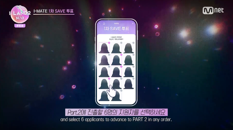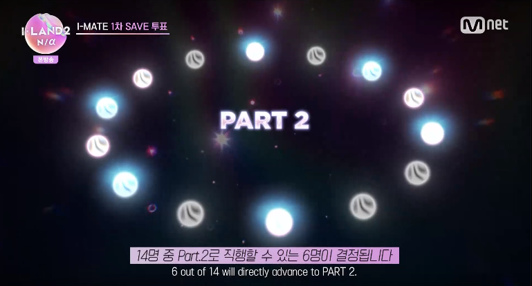 아이랜더 12인 중 프로듀서의 선택을 받는 6명은 Part.2 로 진출하고 , 선택받지 못한 6명과 그라운더 8명 은 시청자들의 투표에 의해 상위 6명이 Part.2 로 진출합니다.