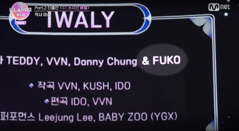 Part.2 진출전의 경연곡은 가사의 일부를 비워두고 아이랜더들에게 작사에 참여하게 하는 미션을 주었는데 후코가 1등으로 뽑혔습니다.