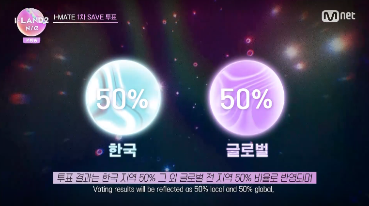 투표 결과의 절반은 한국 , 나머지 절반은 글로벌 투표가 영향을 미칩니다.
