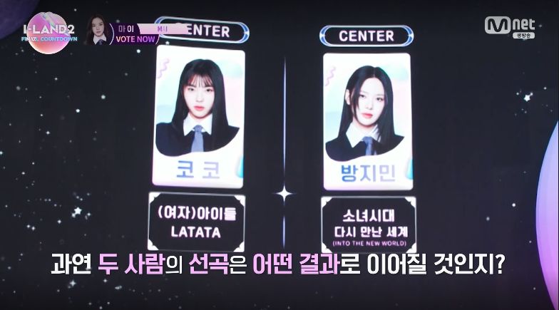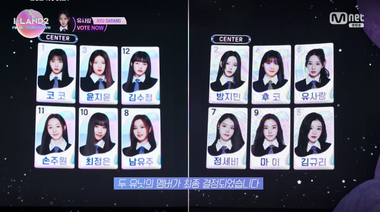 12명은 1등 코코 , 2등 방지민 을 센터로 하여 두팀으로 경연을 펼치게 됩니다.