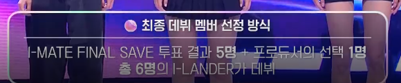 투표에 의해 5명 + 프로듀서 선택 1명 이 데뷔하게 됩니다.