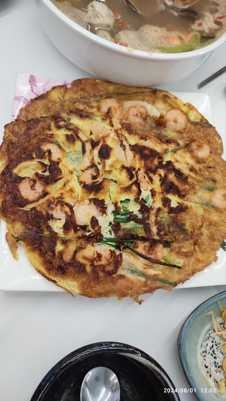 우리는 양칼국수와 해물파전을 주문했습니다.