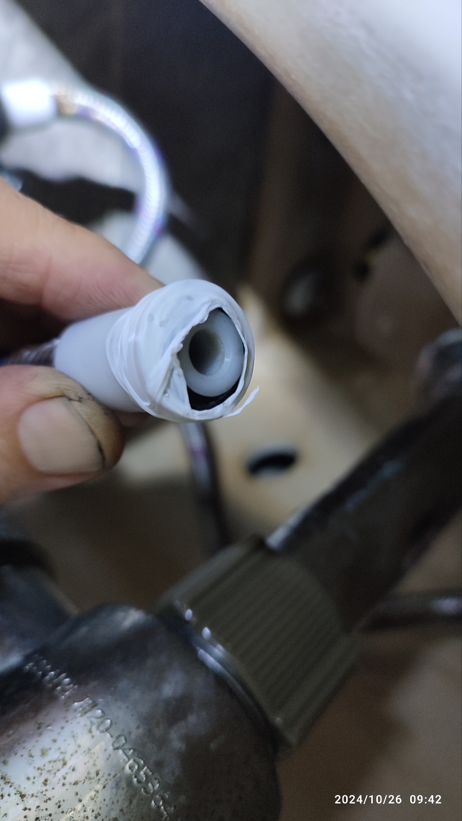 아직 호스가 연결되어 있는 것 처럼 보이지만, 살짝 잡아 당기면 떼어집니다.