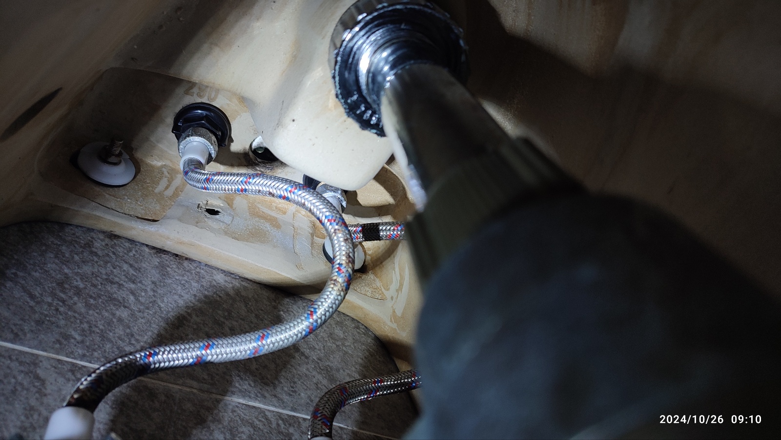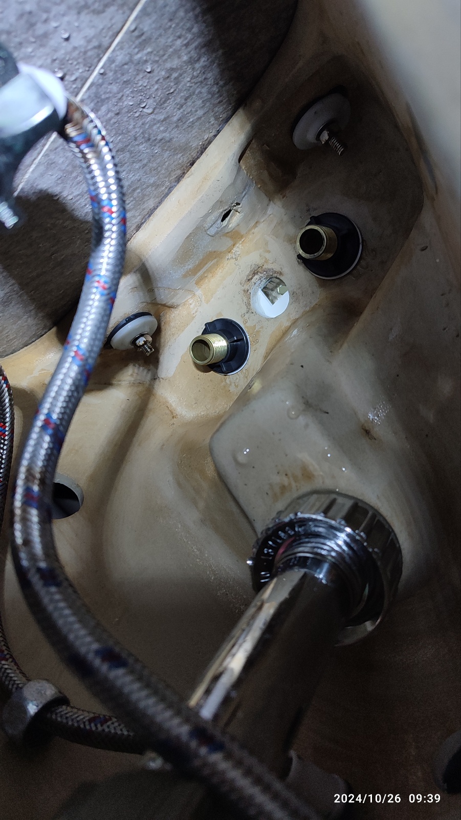 호스를 떼어낸 후 검은색 플라스틱부분을 돌려서 풀어내면 세면대에서 수전을 분리할 수 있습니다.