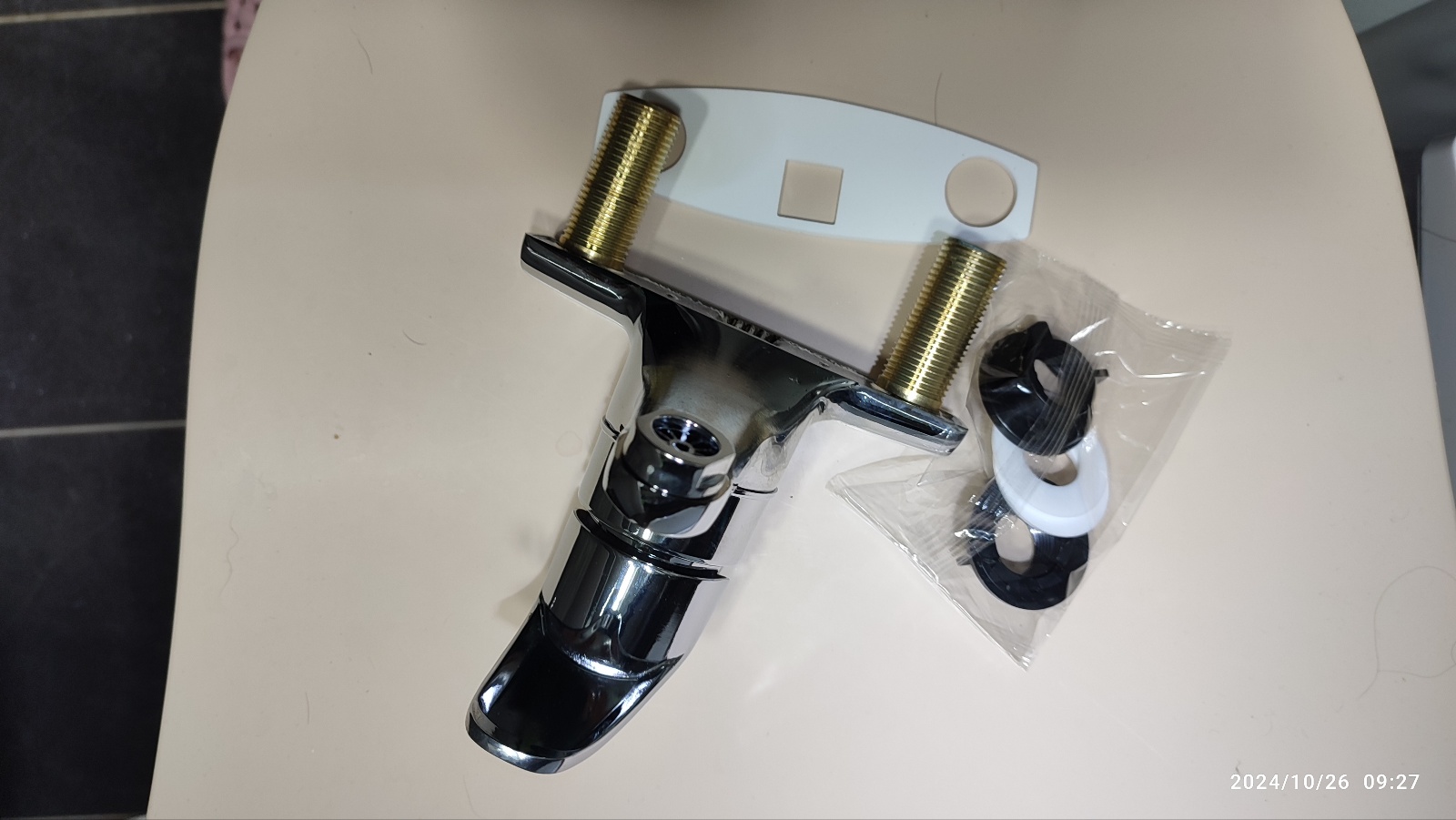 이 제품은 3구 (3홀) 수전입니다. 하지만 2구 수전용 세면대에 설치하는데 문제가 없어 보입니다.