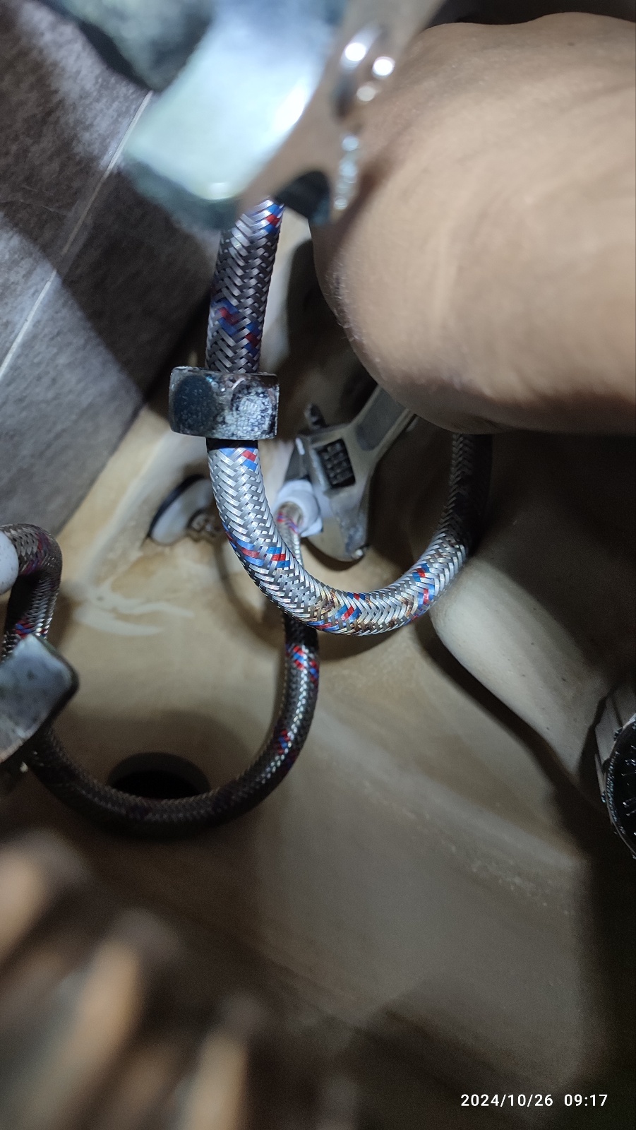 배관과 수전을 연결하는 부위를 풀어냅니다.