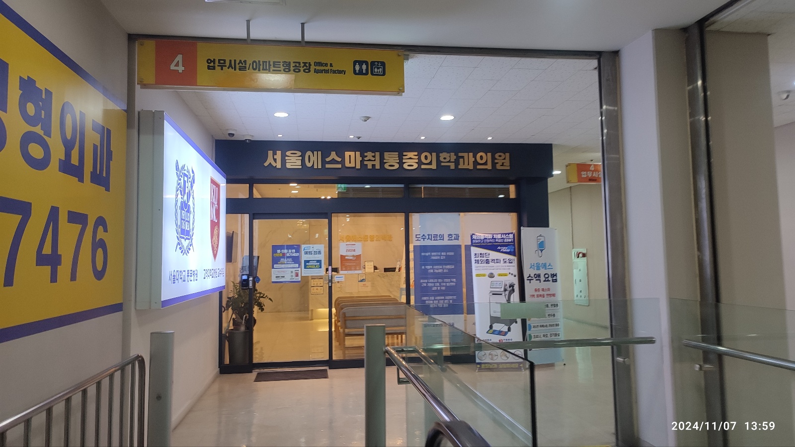 서울 가산디지털단지역 부근 서울S통증의학과 에서 진료받은 후기입니다.