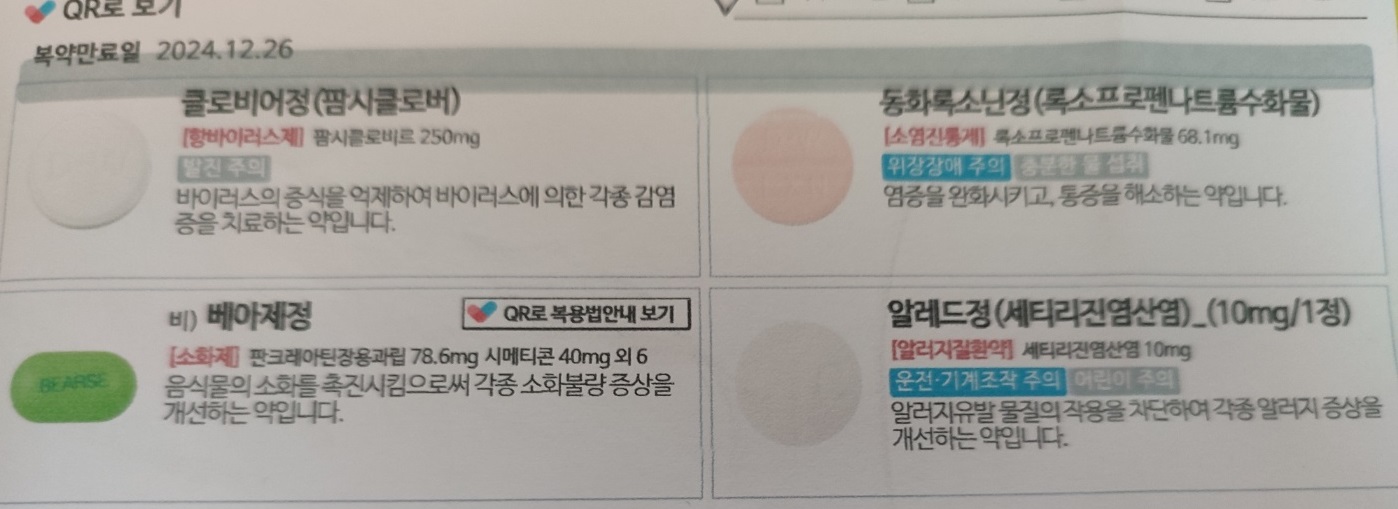 처방된 약의 핵심은 항바이러스제 , 알러지약 입니다.