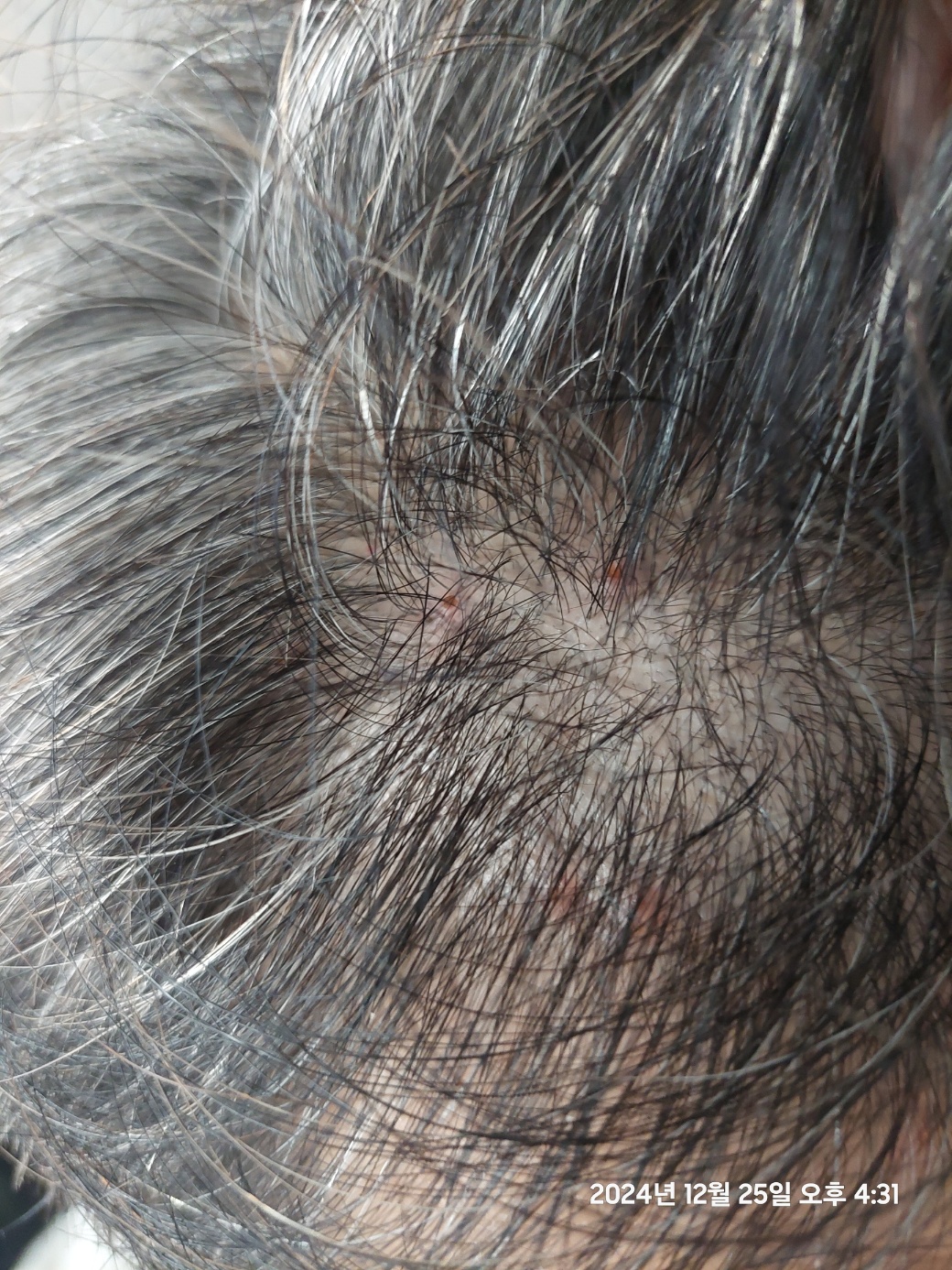어제 저녁 갑자기 머리 사방에서 뾰루지? 같은 것들이 발견되었습니다.