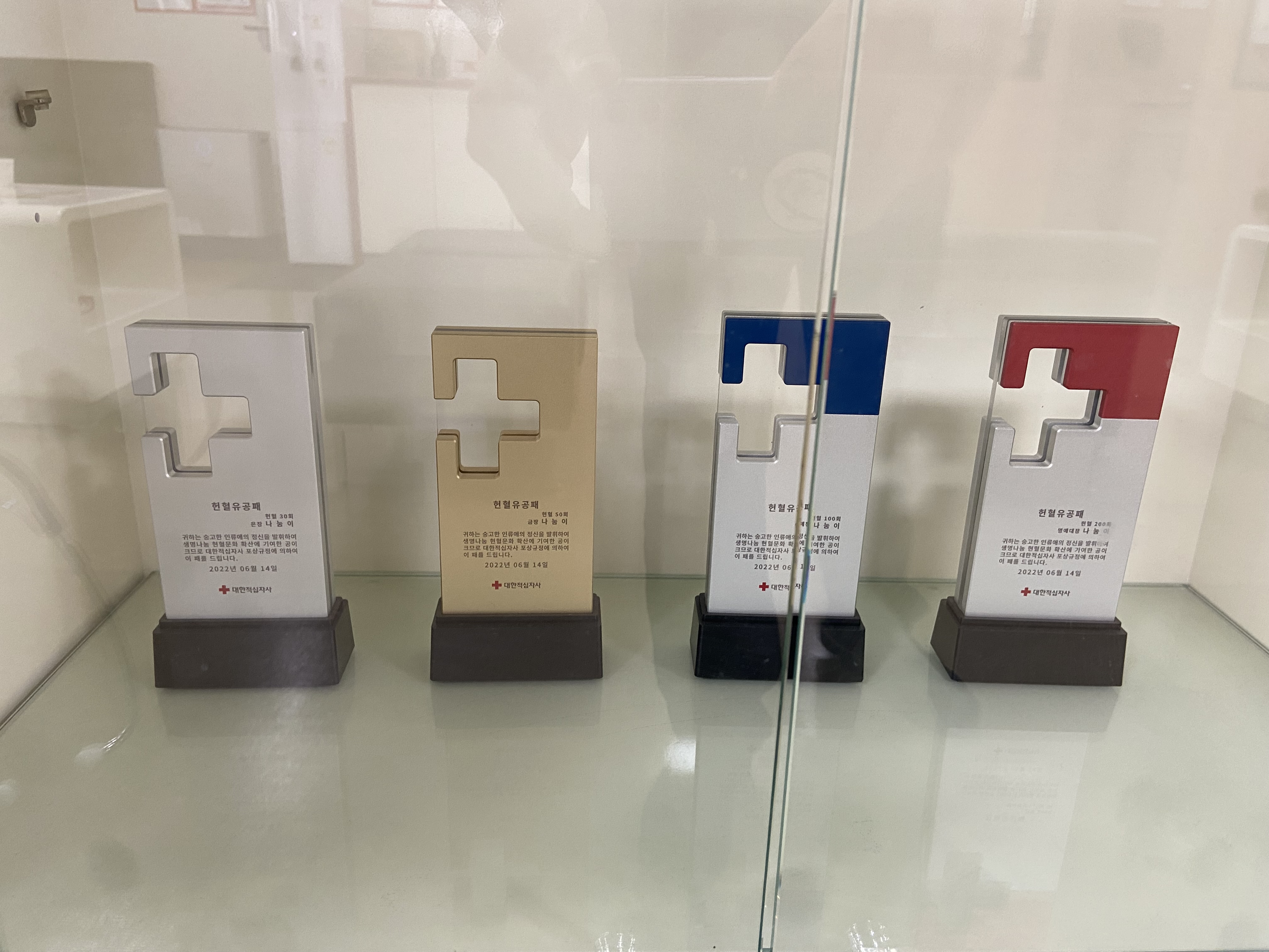 앞으로 헌혈의집에서 22회만 더 헌혈하면 적십자혈액원에서 주는 100회 헌혈 유공패를 받게 되더군요.