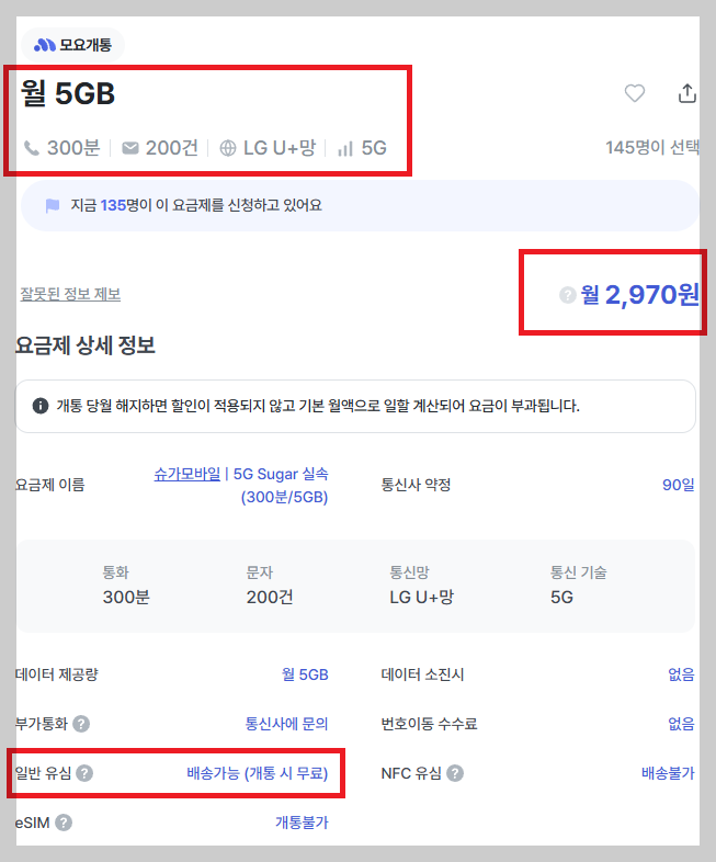 게다가 유심 무료네요.