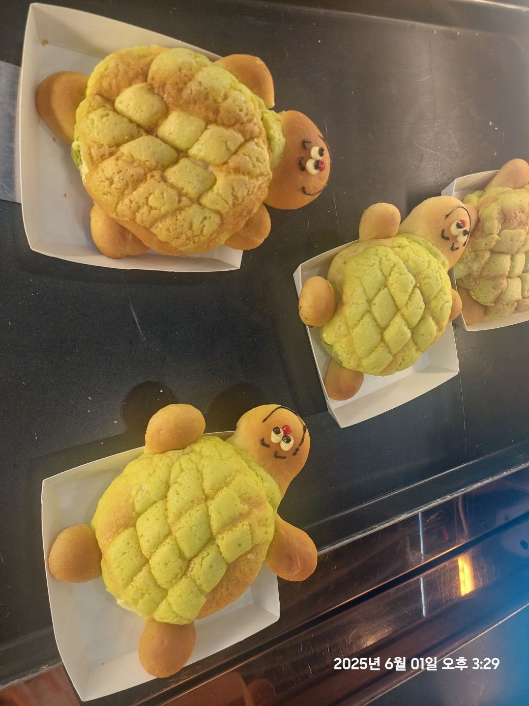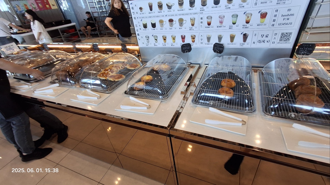우리는 점심을 먹고 갔기 때문에 많은 빵들 중에서 2개만 골랐습니다.