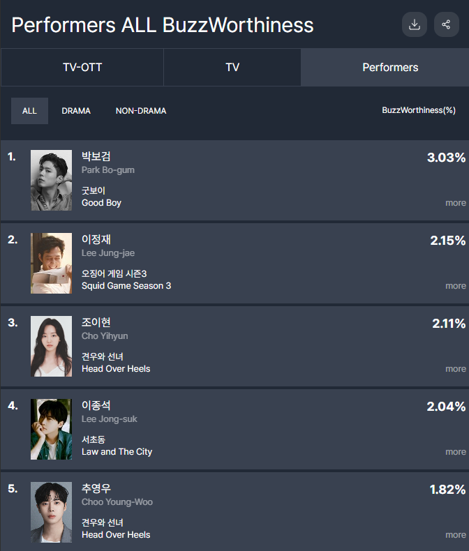 - 출연자 화제성: 특정 배우나 출연자가 얼마나 이슈가 되고 있는지, 그의 인기가 어느 정도인지도 알 수 있답니다.