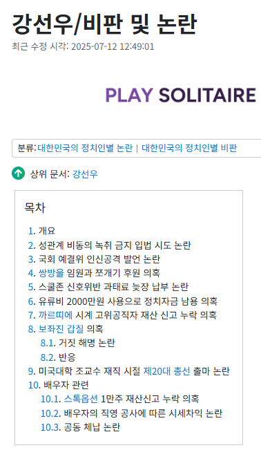 나무위키에 따르면 강선우는 이러한 논란이 있는 사람입니다.